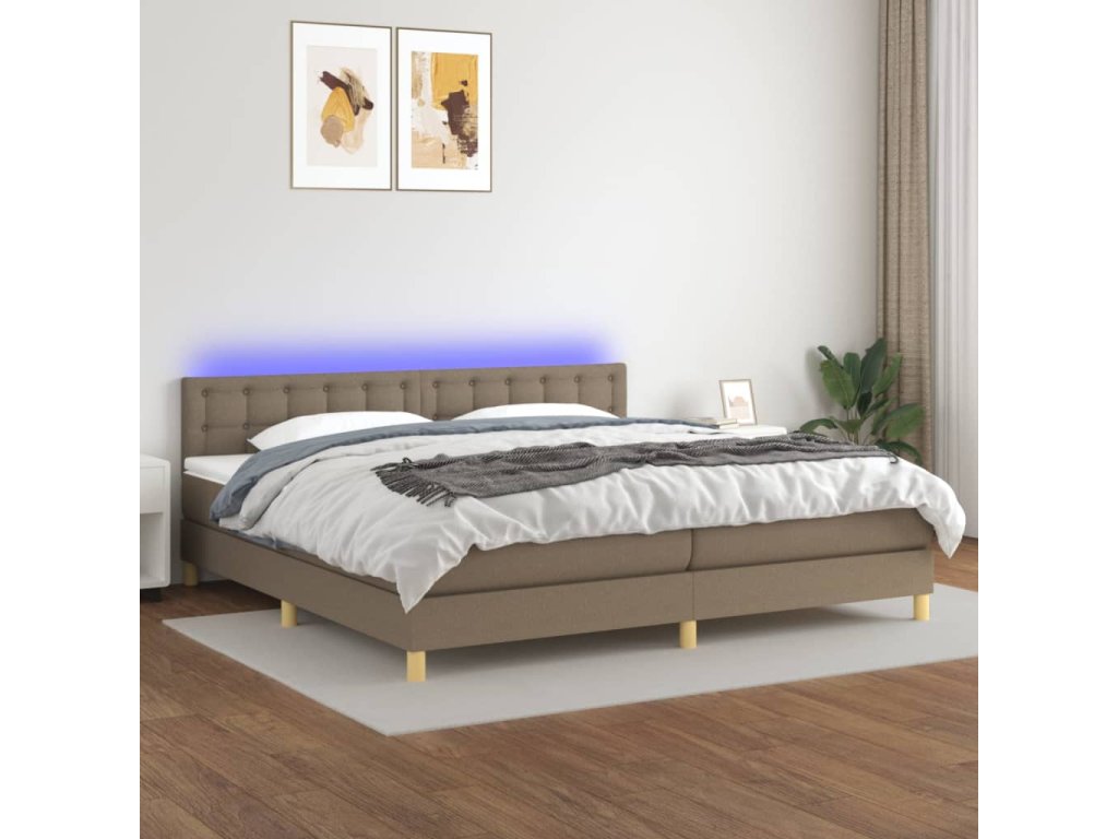 vidaXL Posteľ boxsping s matracom a LED sivohnedá 200x200 cm látka