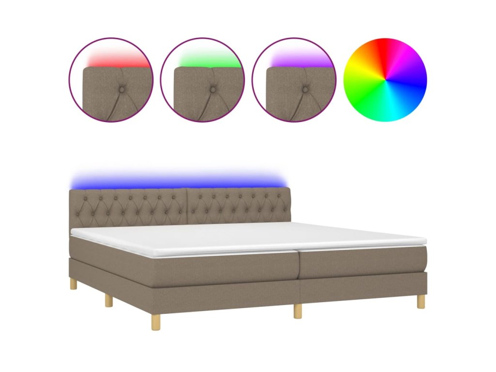 vidaXL Posteľ boxsping s matracom a LED sivohnedá 200x200 cm látka