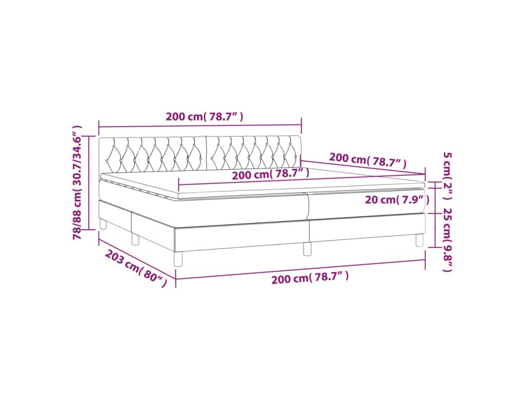 - Celkové rozmery: 203 x 200 x 78/88 cm (D x Š x V)