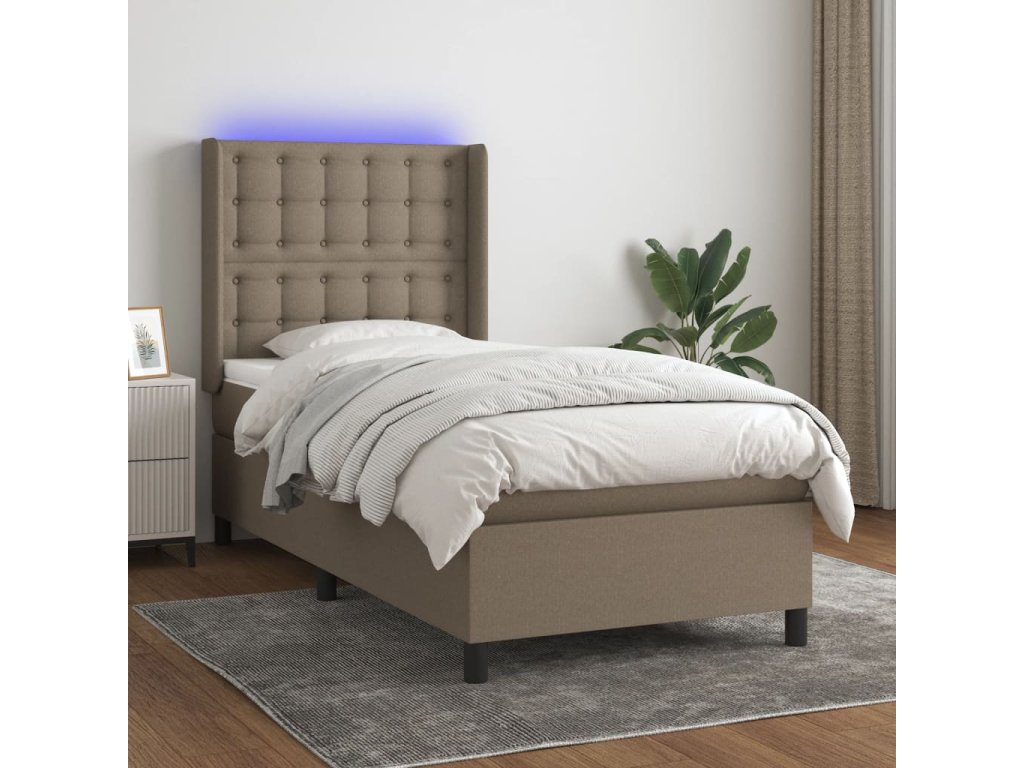 vidaXL Posteľ boxsping s matracom a LED sivohnedá 80x200 cm látka