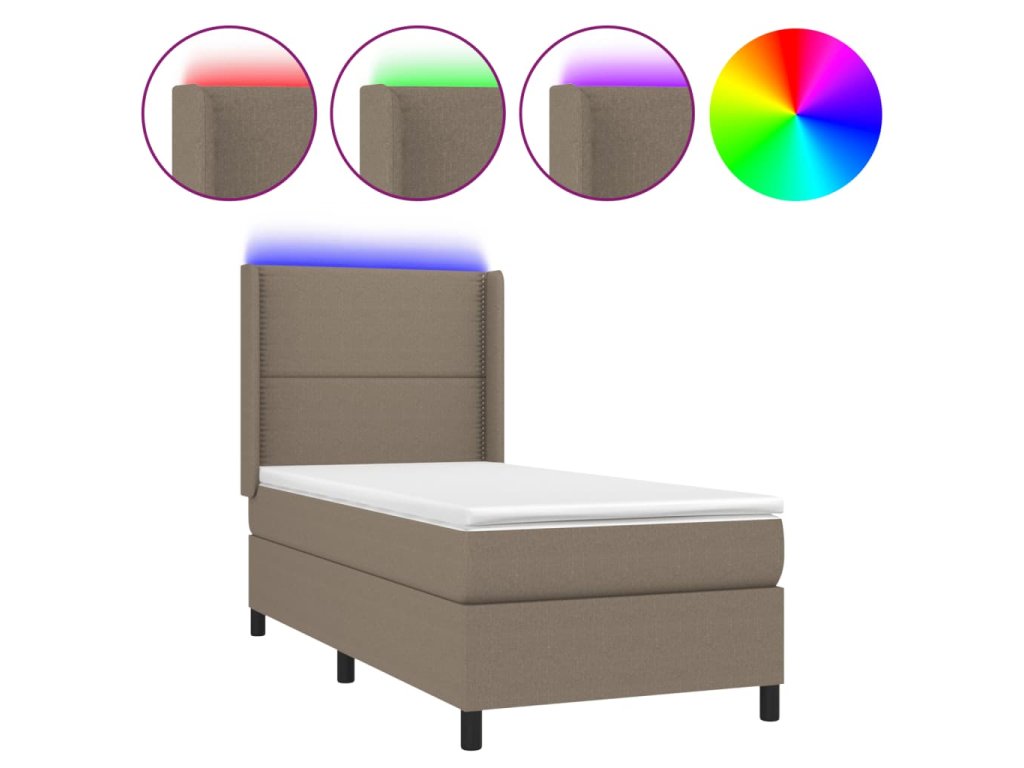 vidaXL Posteľ boxsping s matracom a LED sivohnedá 90x190 cm látka
