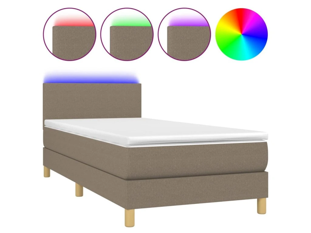 vidaXL Posteľ boxsping s matracom a LED sivohnedá 90x200 cm látka