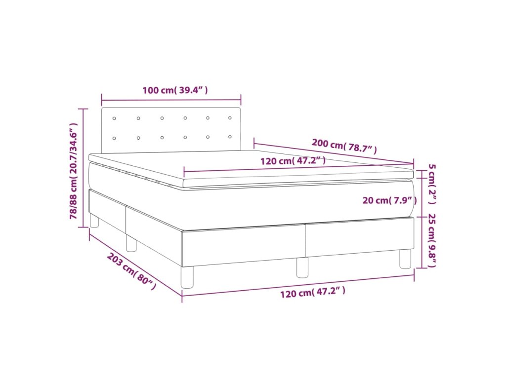 vidaXL Posteľ boxsping s matracom a LED tmavohnedá 120x200 cm látka