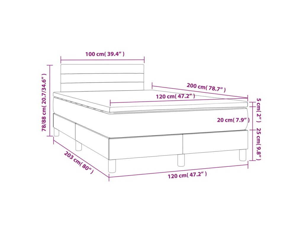 - Rozmery: 120 x 200 x 20 cm (Š x D x V)