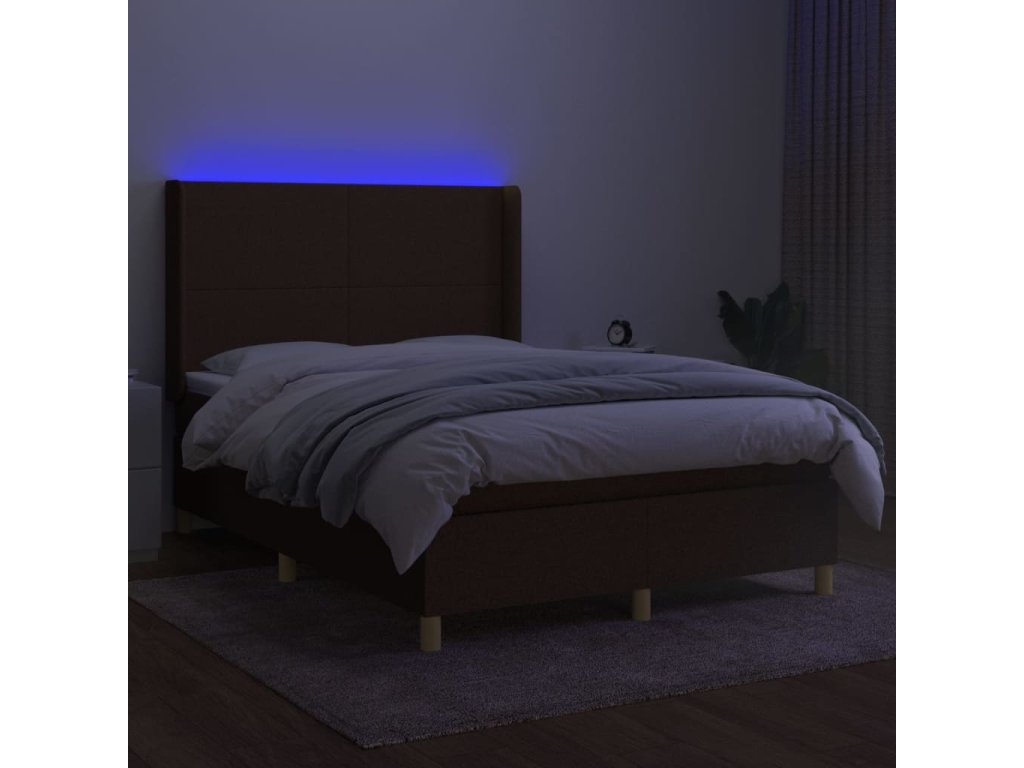 vidaXL Posteľ boxsping s matracom a LED tmavohnedá 140x190 cm látka
