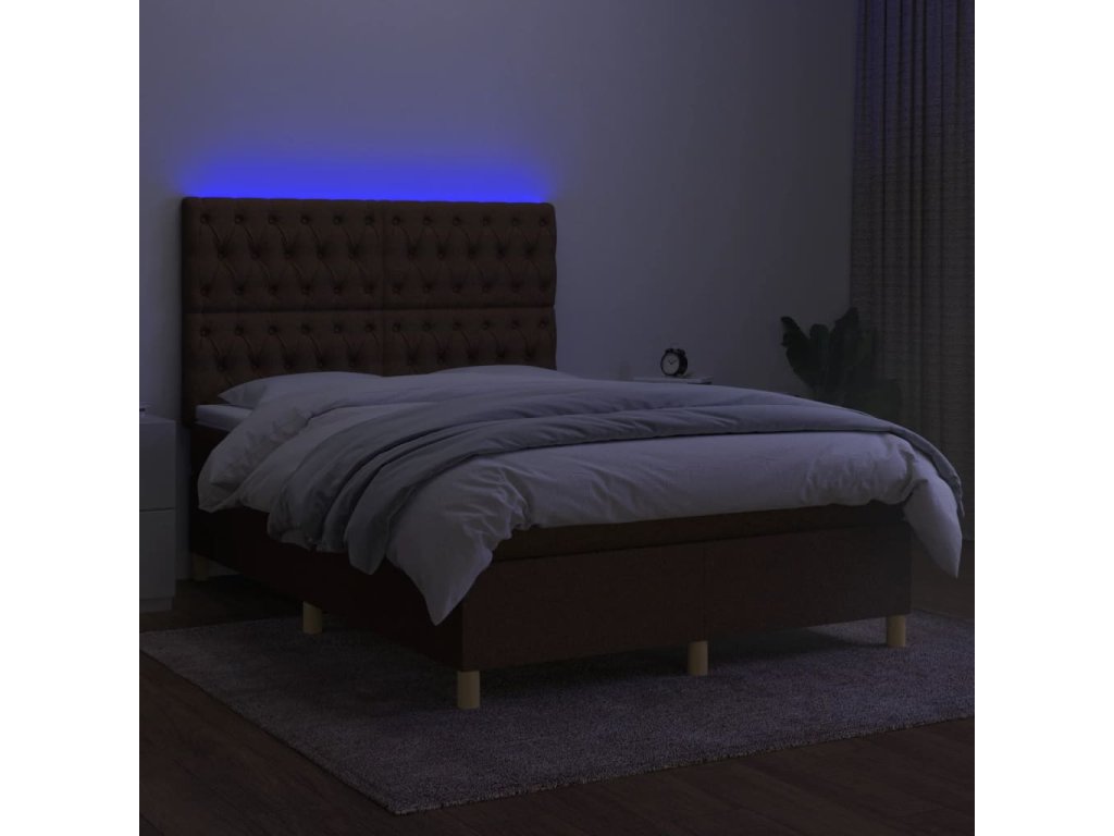 vidaXL Posteľ boxsping s matracom a LED tmavohnedá 140x200 cm látka