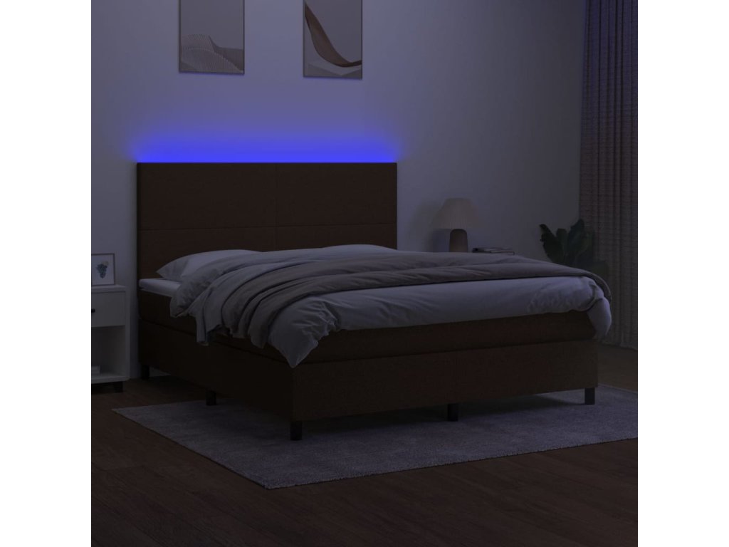 vidaXL Posteľ boxsping s matracom a LED tmavohnedá 160x200 cm látka