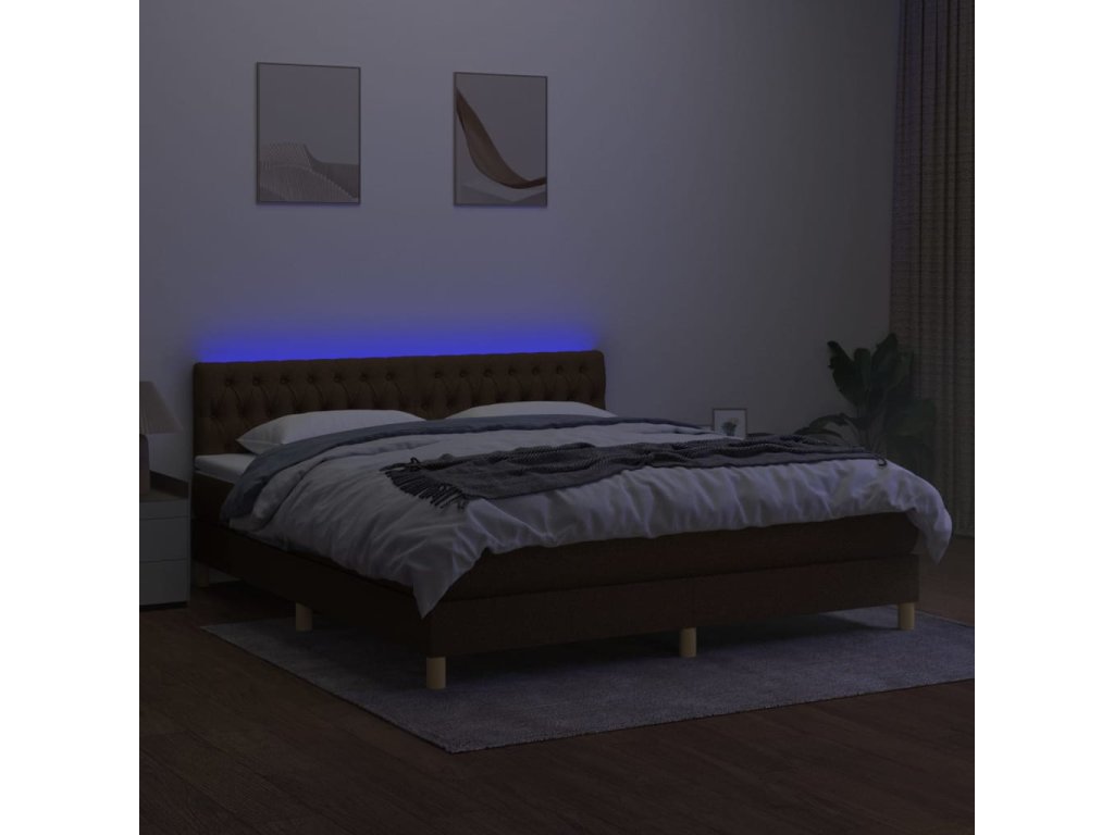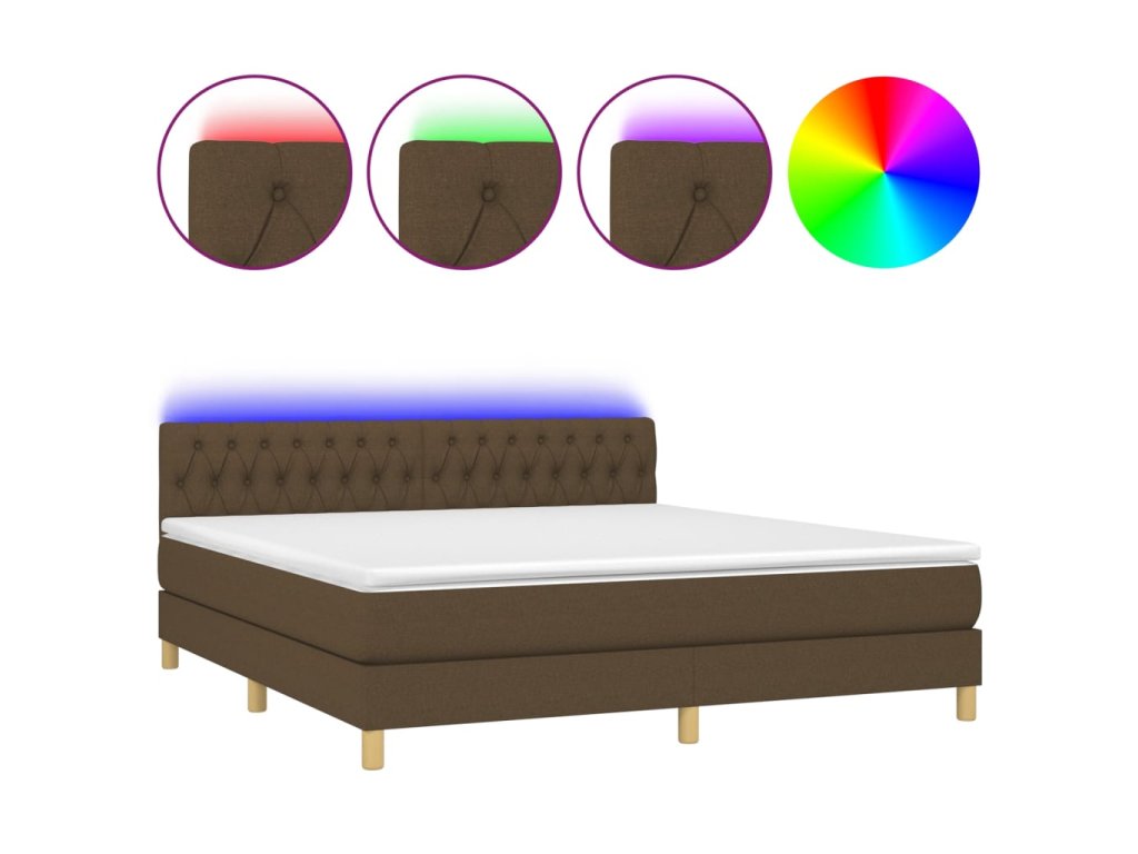 vidaXL Posteľ boxsping s matracom a LED tmavohnedá 160x200 cm látka