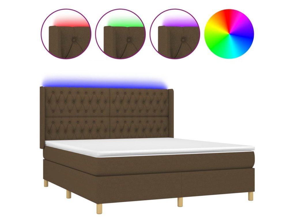 vidaXL Posteľ boxsping s matracom a LED tmavohnedá 160x200 cm látka