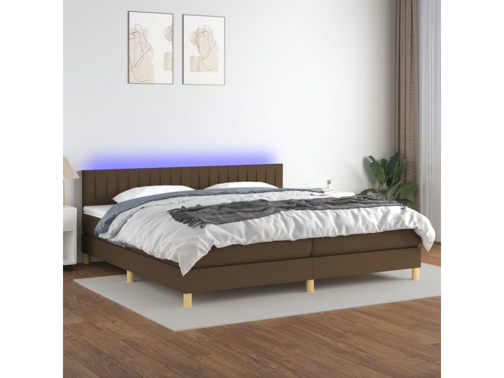 vidaXL Posteľ boxsping s matracom a LED tmavohnedá 200x200 cm látka