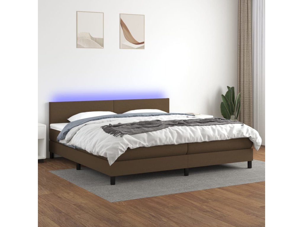 vidaXL Posteľ boxsping s matracom a LED tmavohnedá 200x200 cm látka