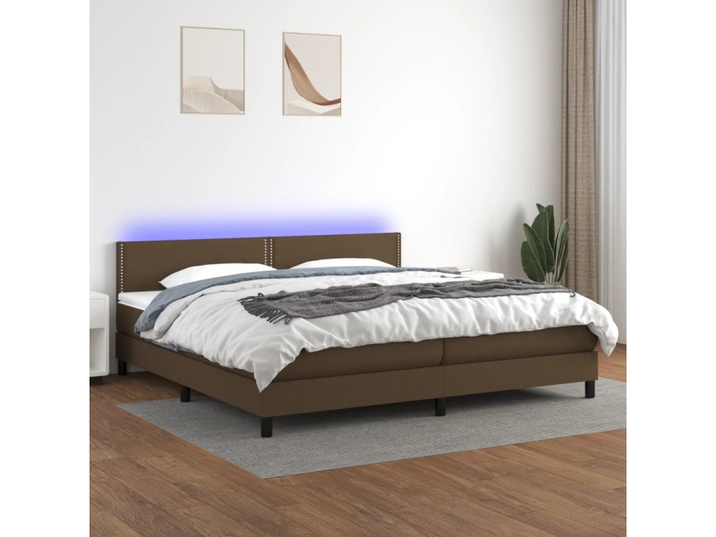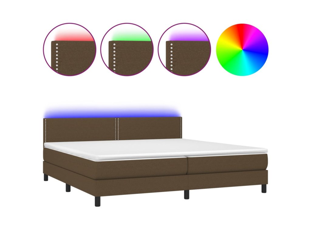 vidaXL Posteľ boxsping s matracom a LED tmavohnedá 200x200 cm látka