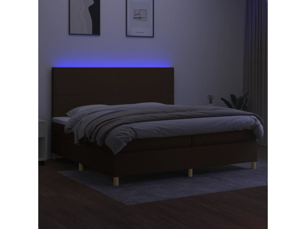 vidaXL Posteľ boxsping s matracom a LED tmavohnedá 200x200 cm látka