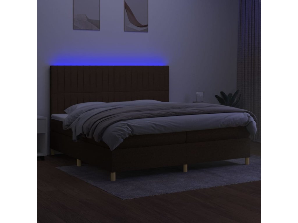 vidaXL Posteľ boxsping s matracom a LED tmavohnedá 200x200 cm látka