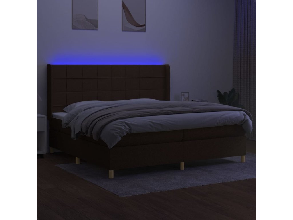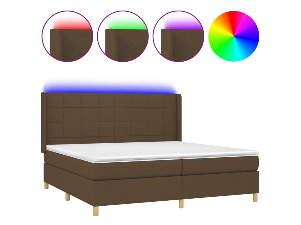 vidaXL Posteľ boxsping s matracom a LED tmavohnedá 200x200 cm látka