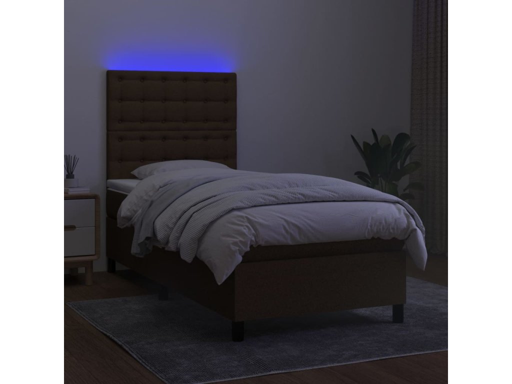 vidaXL Posteľ boxsping s matracom a LED tmavohnedá 80x200 cm látka