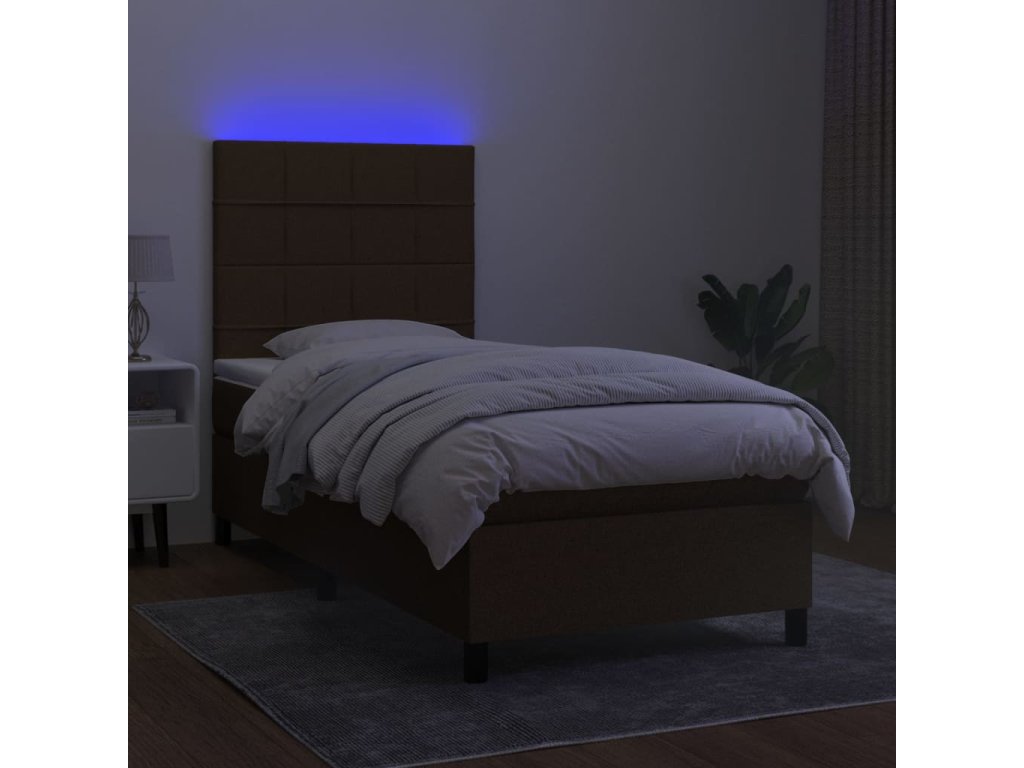 vidaXL Posteľ boxsping s matracom a LED tmavohnedá 80x200 cm látka