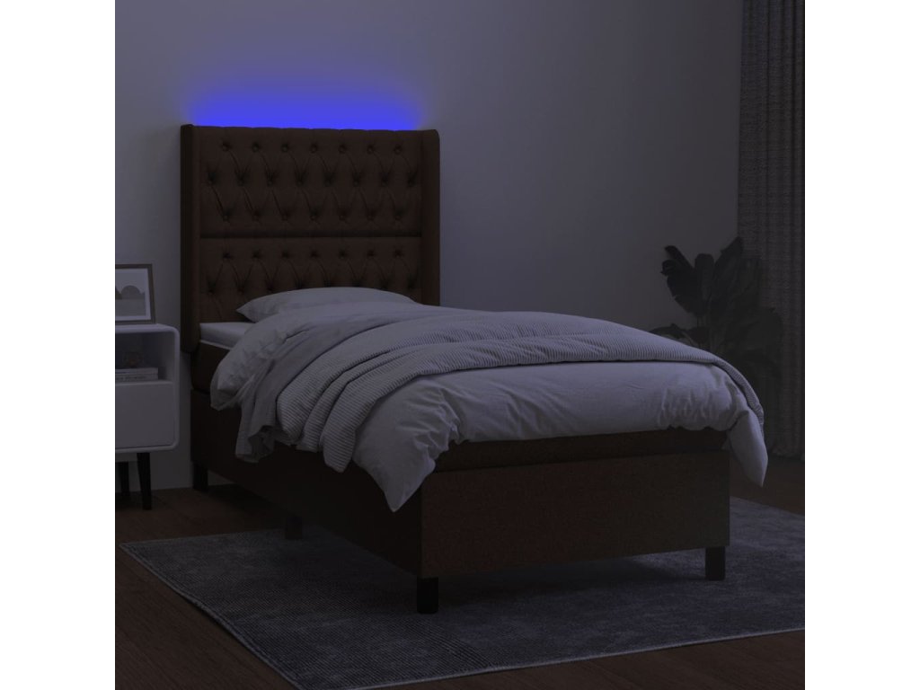 vidaXL Posteľ boxsping s matracom a LED tmavohnedá 80x200 cm látka