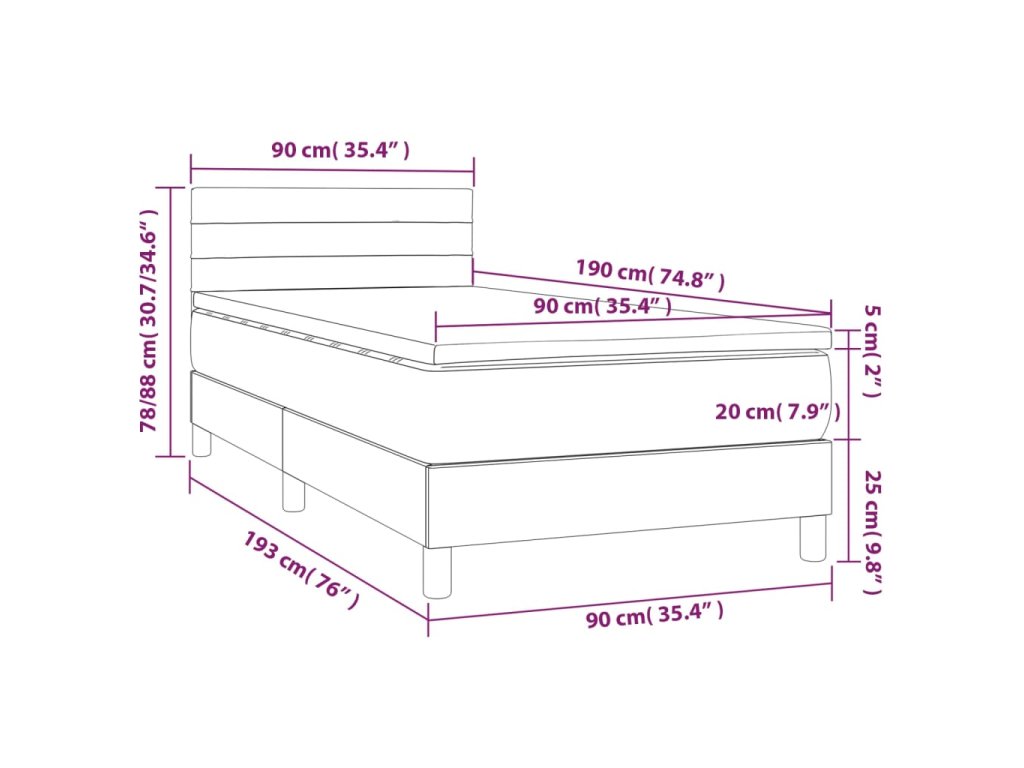 vidaXL Posteľ boxsping s matracom a LED tmavohnedá 90x190 cm látka