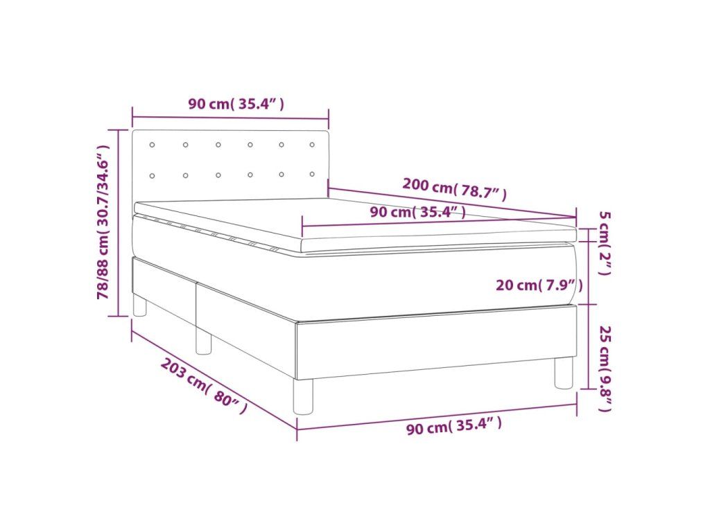 vidaXL Posteľ boxsping s matracom a LED tmavohnedá 90x200 cm látka