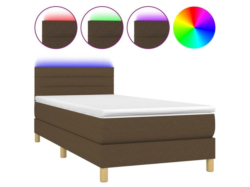 vidaXL Posteľ boxsping s matracom a LED tmavohnedá 90x200 cm látka