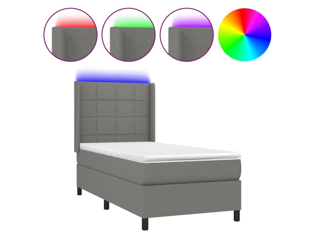 vidaXL Posteľ boxsping s matracom a LED tmavosivá 100x200 cm látka