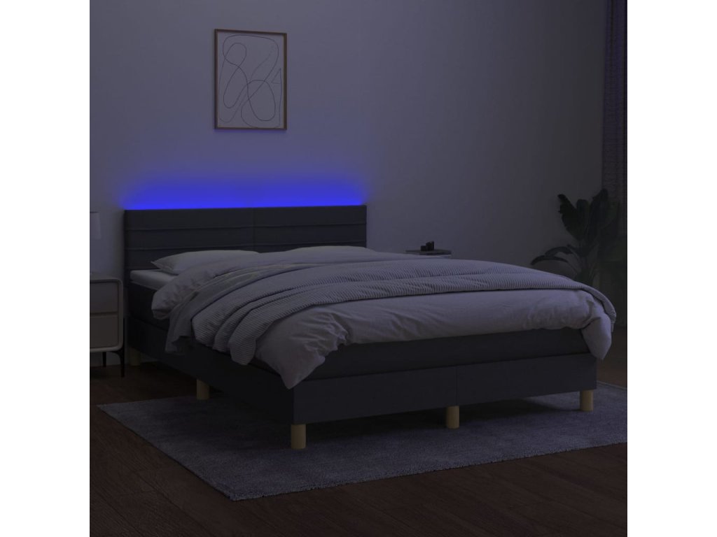 vidaXL Posteľ boxsping s matracom a LED tmavosivá 140x190 cm látka