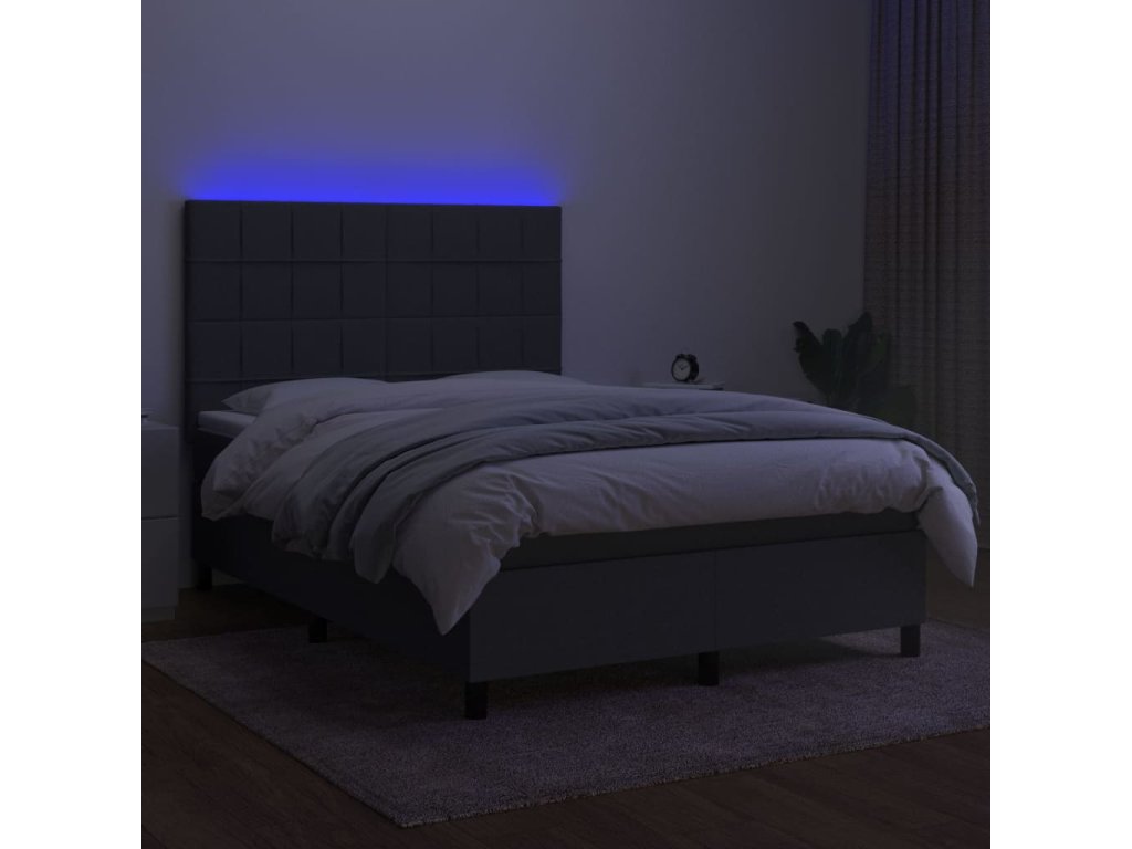 vidaXL Posteľ boxsping s matracom a LED tmavosivá 140x190 cm látka
