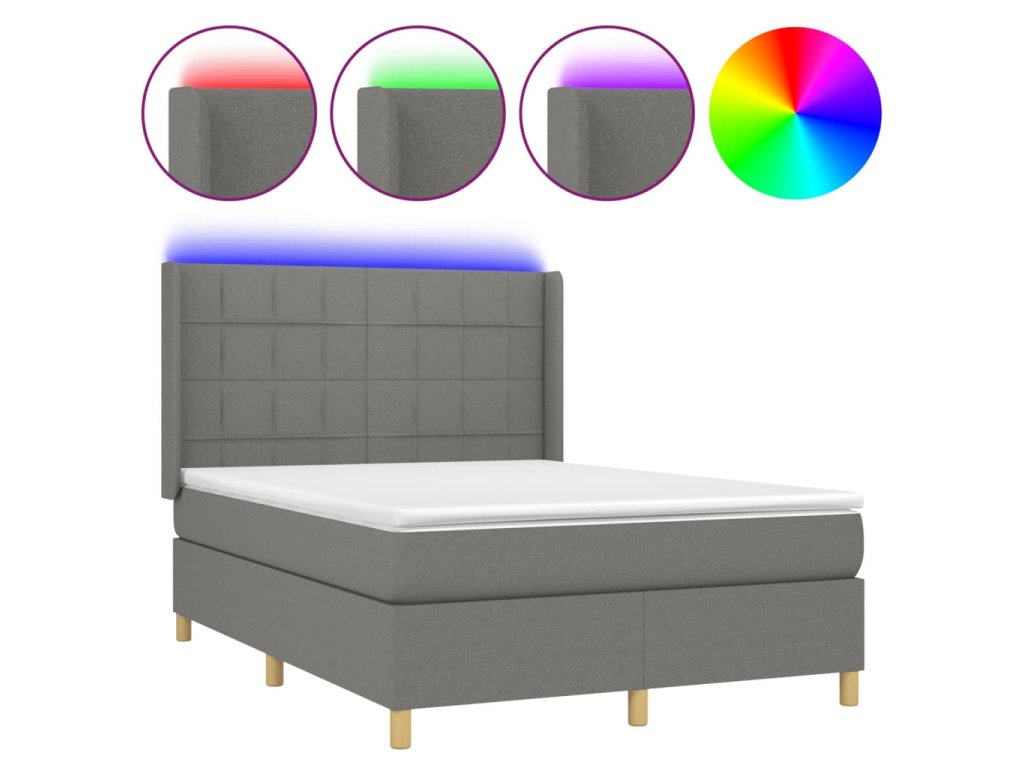 vidaXL Posteľ boxsping s matracom a LED tmavosivá 140x190 cm látka
