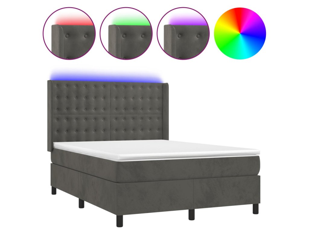vidaXL Posteľ boxsping s matracom a LED tmavosivá 140x190 cm zamat