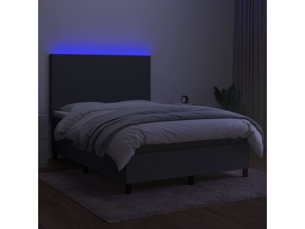 vidaXL Posteľ boxsping s matracom a LED tmavosivá 140x200 cm látka