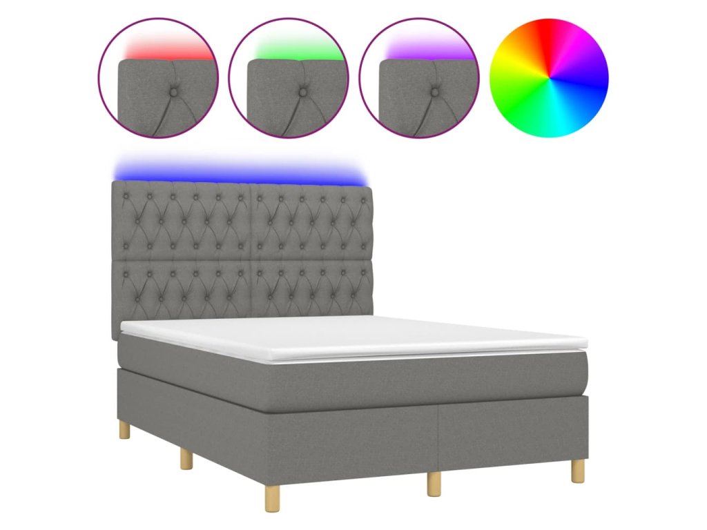 vidaXL Posteľ boxsping s matracom a LED tmavosivá 140x200 cm látka