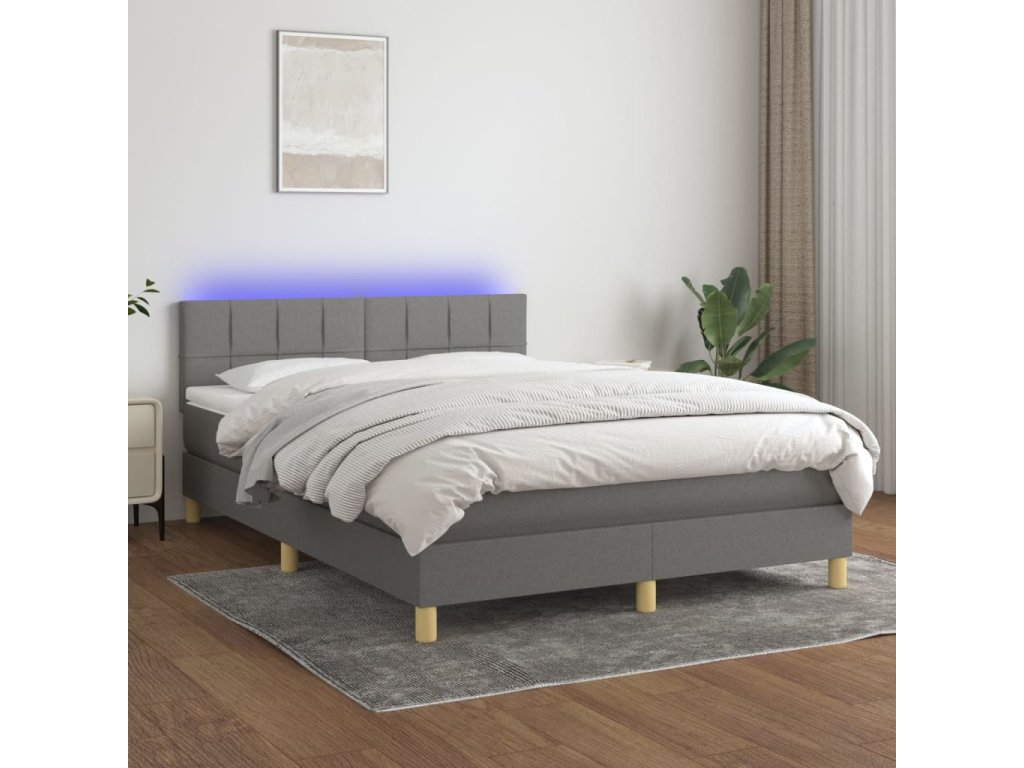 vidaXL Posteľ boxsping s matracom a LED tmavosivá 140x200 cm látka