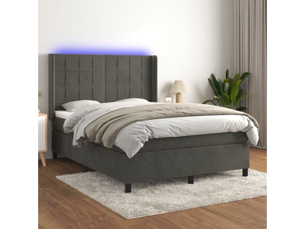vidaXL Posteľ boxsping s matracom a LED tmavosivá 140x200 cm zamat