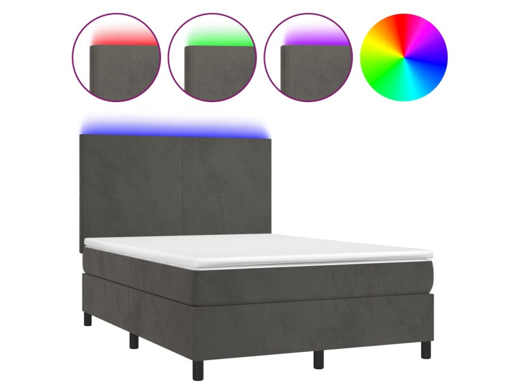 vidaXL Posteľ boxsping s matracom a LED tmavosivá 140x200 cm zamat