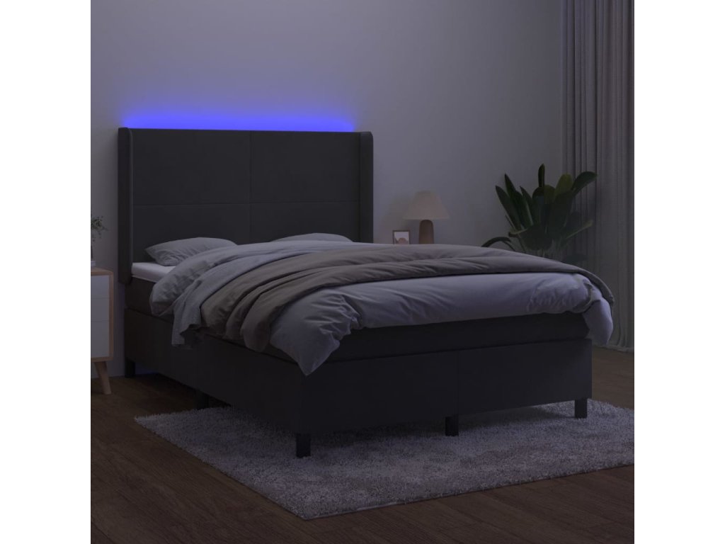 vidaXL Posteľ boxsping s matracom a LED tmavosivá 140x200 cm zamat