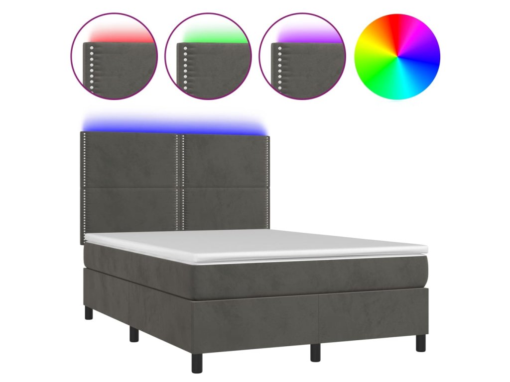 vidaXL Posteľ boxsping s matracom a LED tmavosivá 140x200 cm zamat