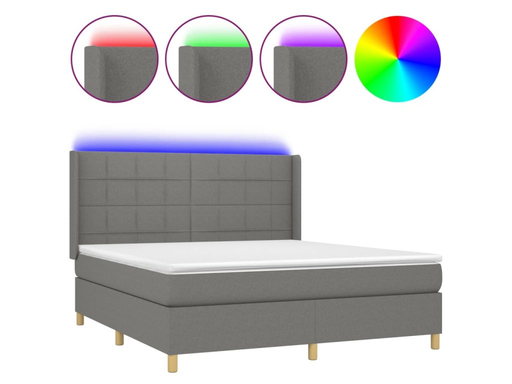 vidaXL Posteľ boxsping s matracom a LED tmavosivá 160x200 cm látka