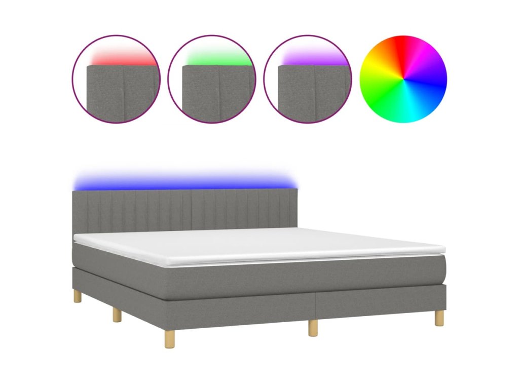 vidaXL Posteľ boxsping s matracom a LED tmavosivá 160x200 cm látka