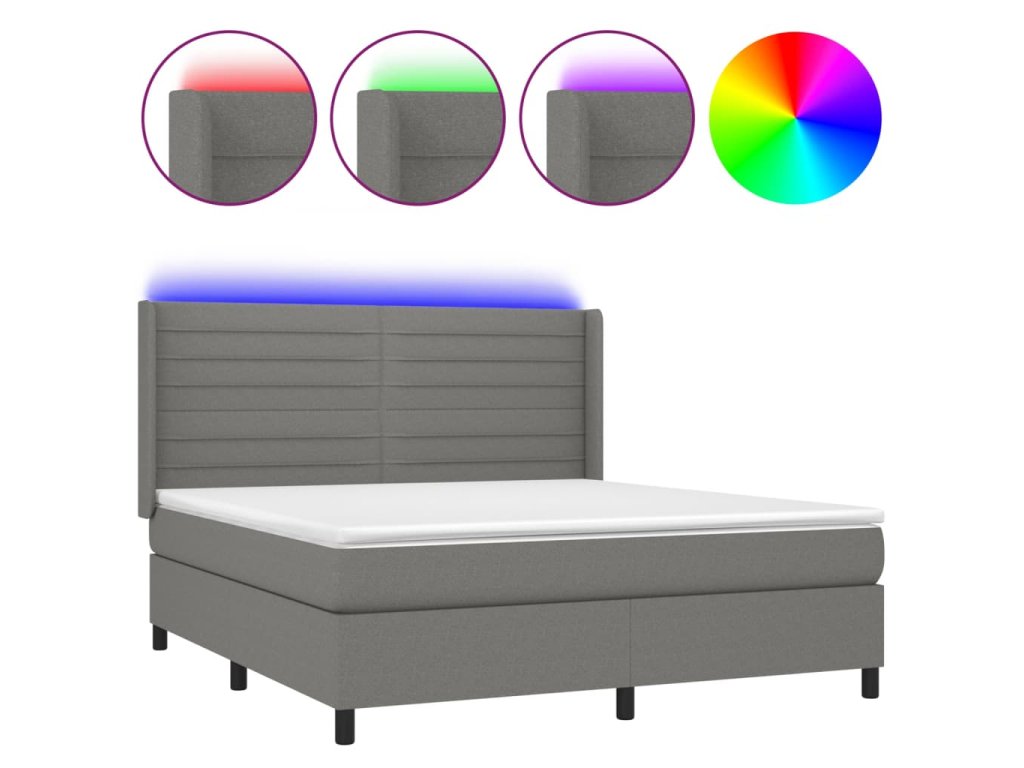 vidaXL Posteľ boxsping s matracom a LED tmavosivá 160x200 cm látka