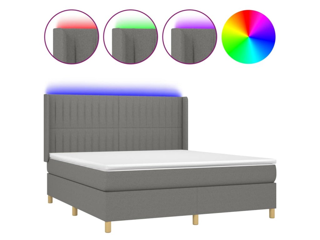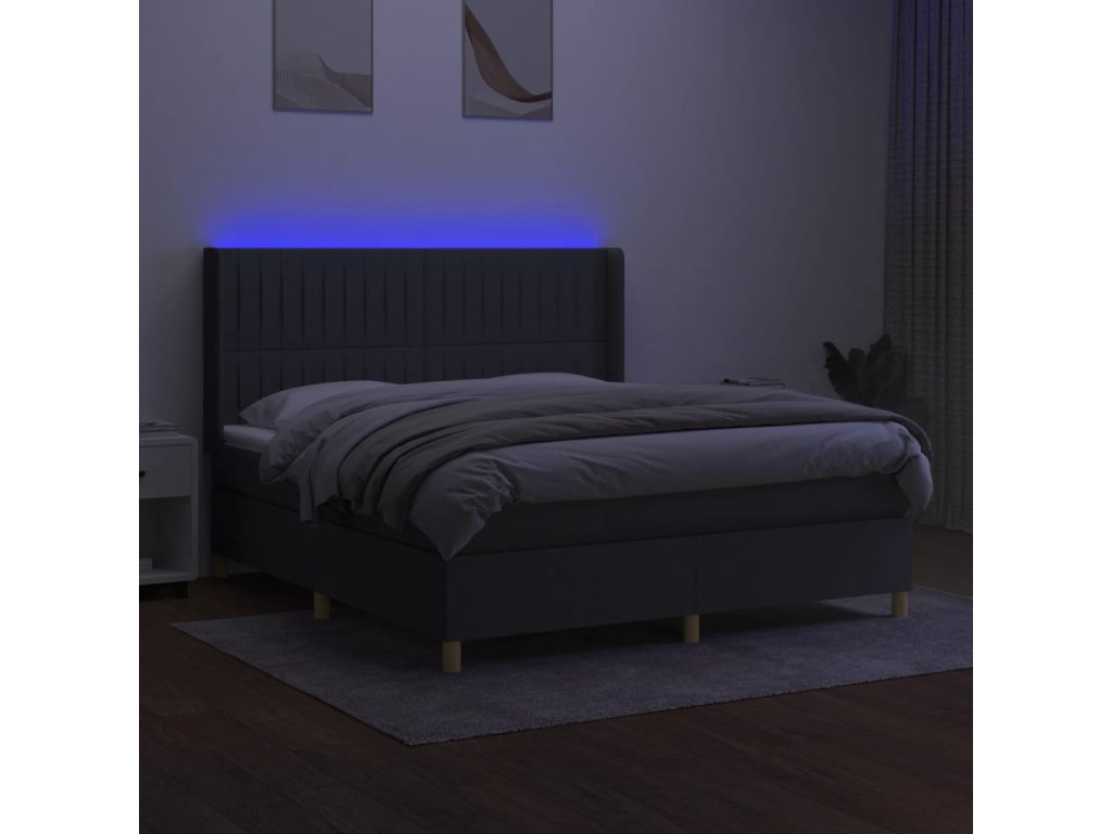 vidaXL Posteľ boxsping s matracom a LED tmavosivá 160x200 cm látka