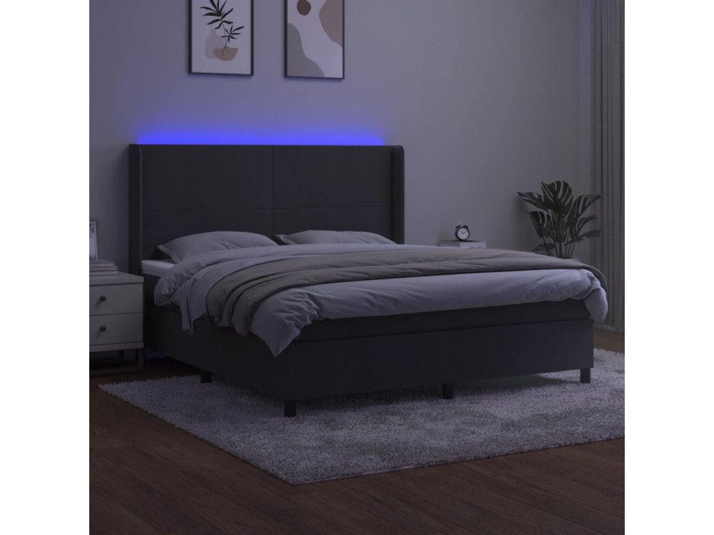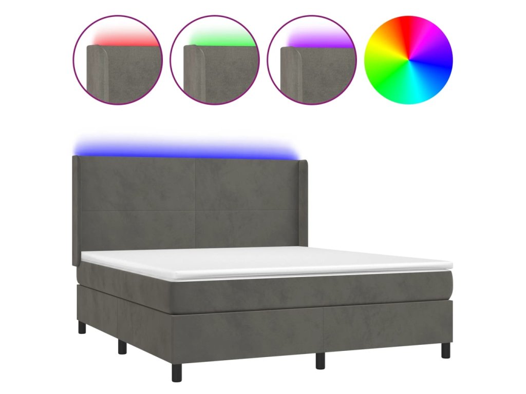 vidaXL Posteľ boxsping s matracom a LED tmavosivá 160x200 cm zamat