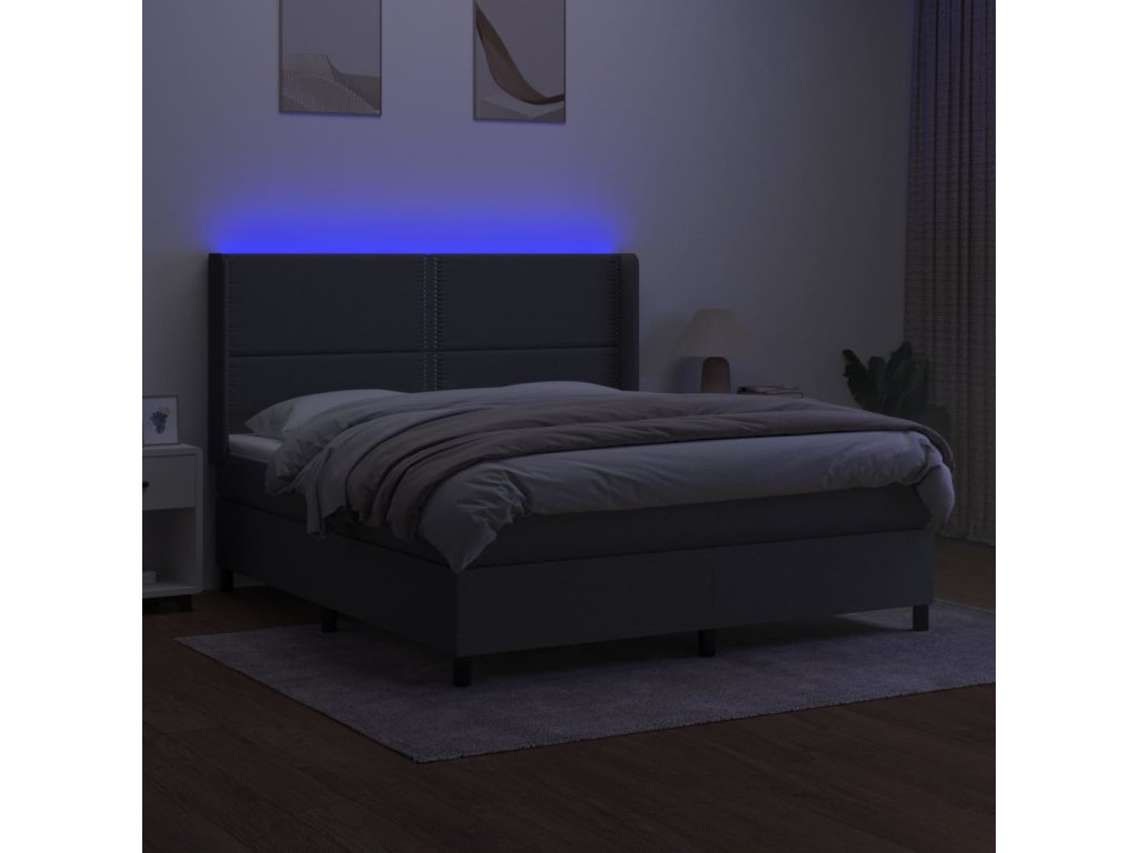 vidaXL Posteľ boxsping s matracom a LED tmavosivá 180x200 cm látka