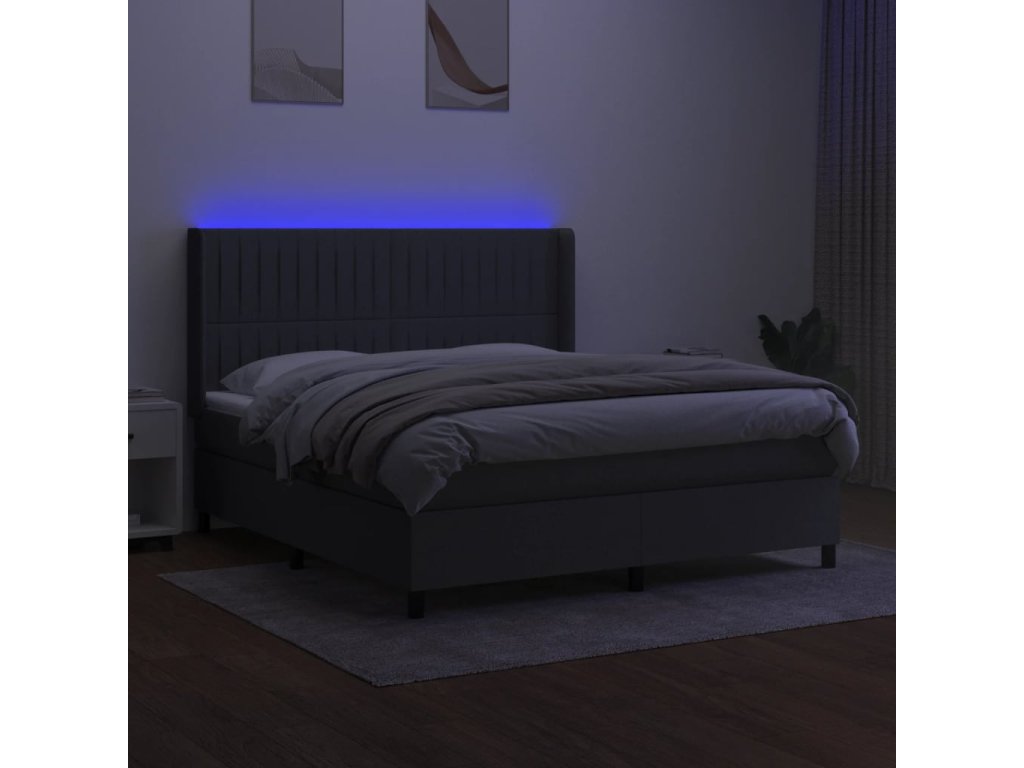 vidaXL Posteľ boxsping s matracom a LED tmavosivá 180x200 cm látka