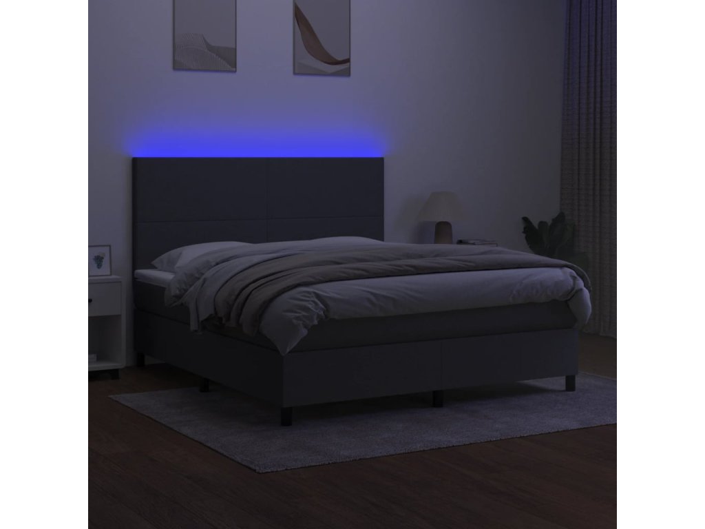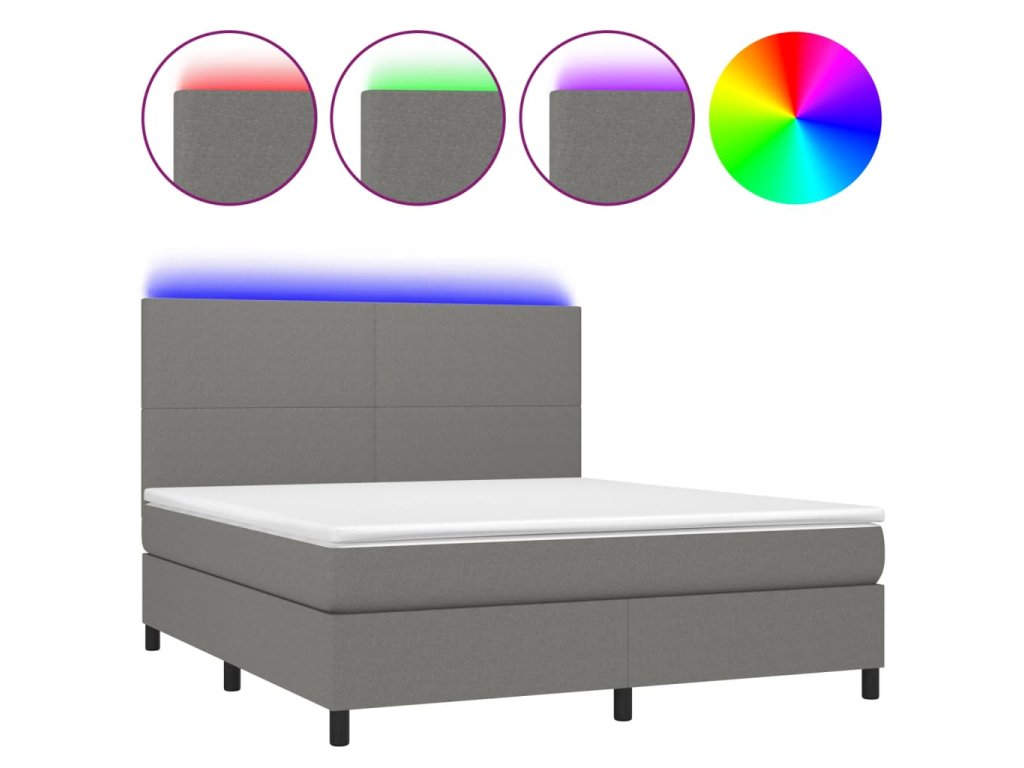vidaXL Posteľ boxsping s matracom a LED tmavosivá 180x200 cm látka