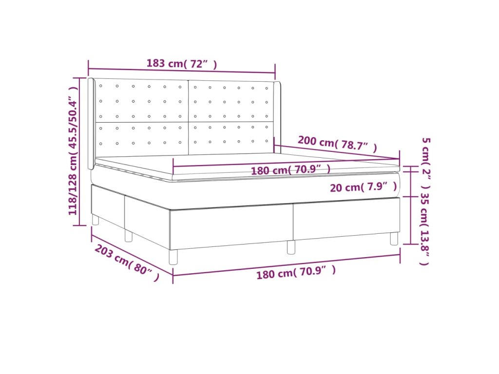 vidaXL Posteľ boxsping s matracom a LED tmavosivá 180x200 cm látka