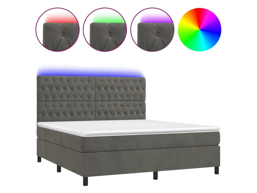 vidaXL Posteľ boxsping s matracom a LED tmavosivá 180x200 cm zamat
