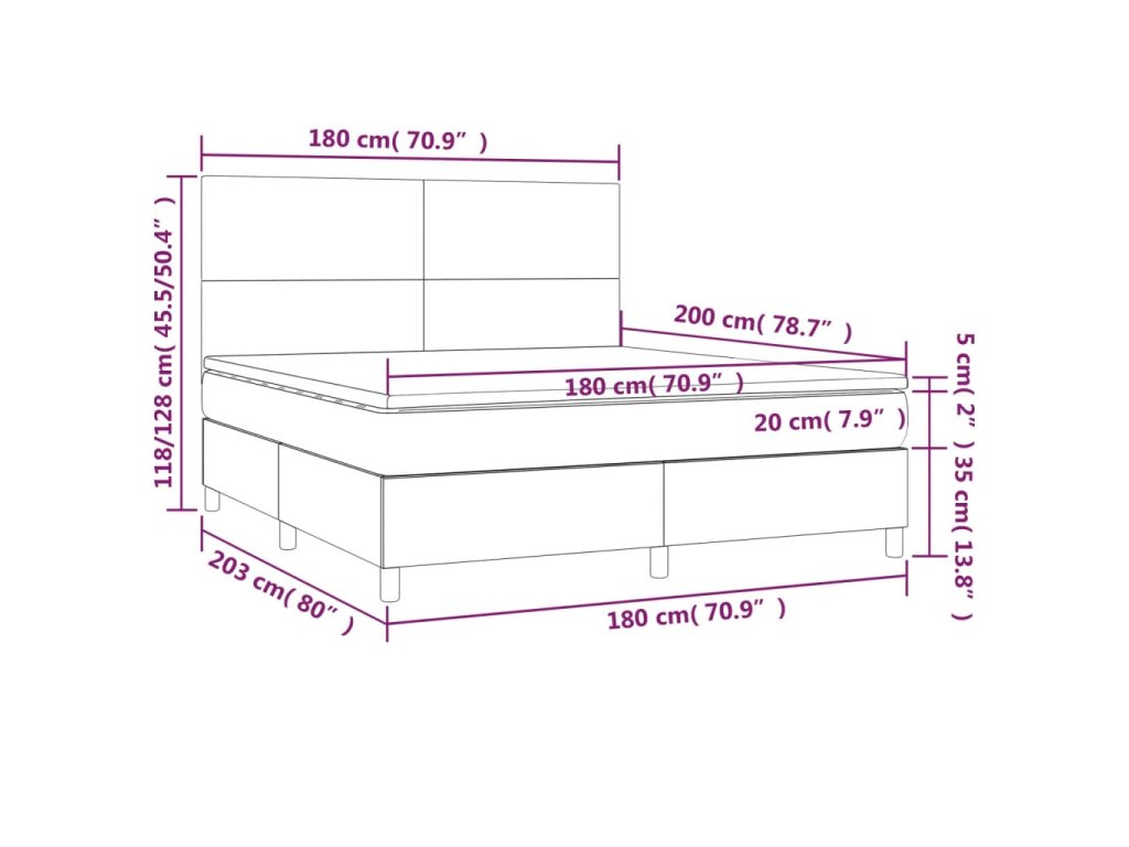 vidaXL Posteľ boxsping s matracom a LED tmavosivá 180x200 cm zamat