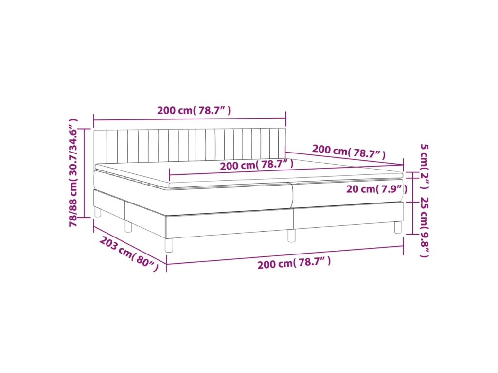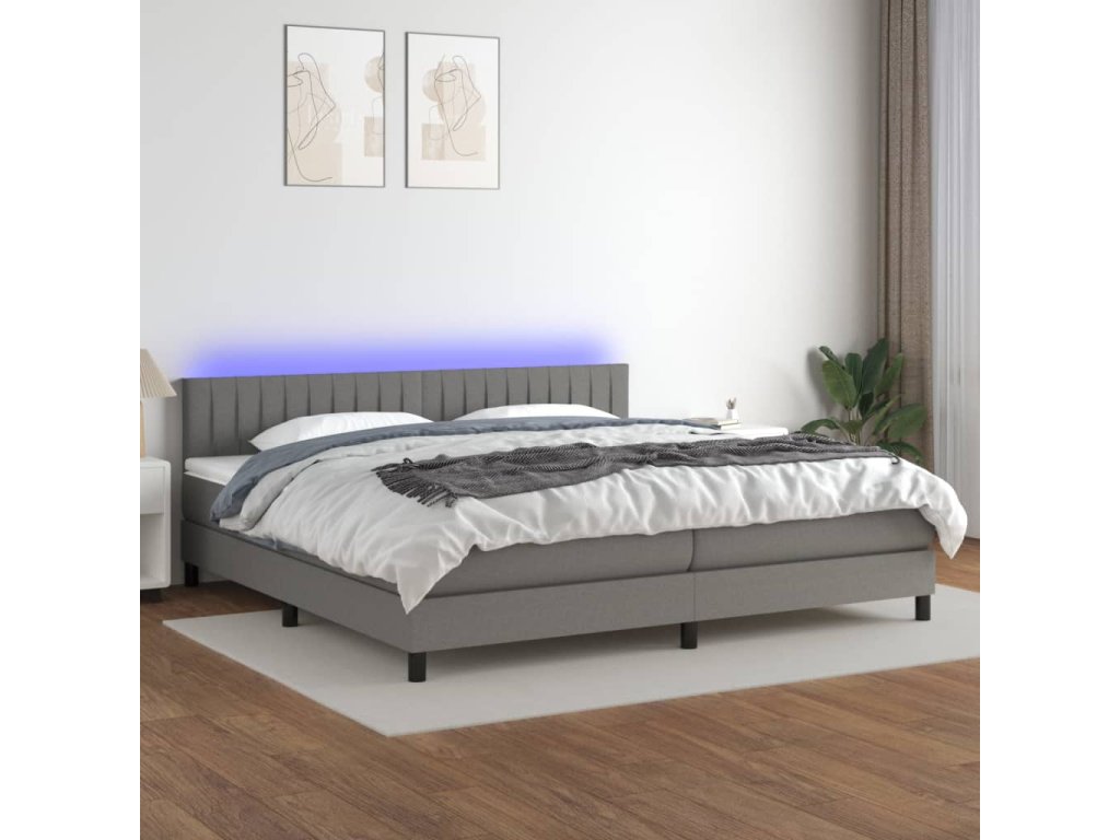 vidaXL Posteľ boxsping s matracom a LED tmavosivá 200x200 cm látka