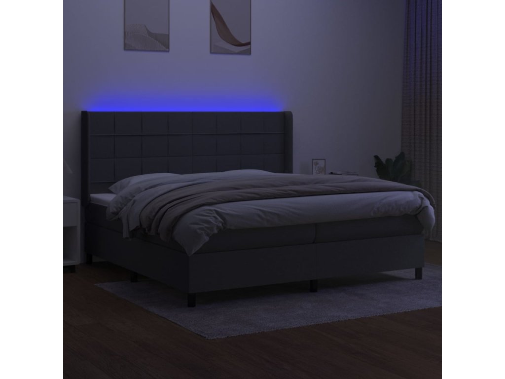 vidaXL Posteľ boxsping s matracom a LED tmavosivá 200x200 cm látka